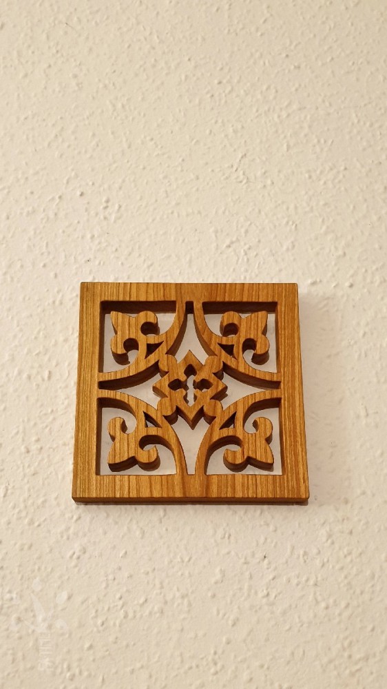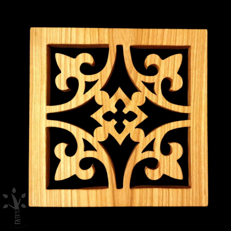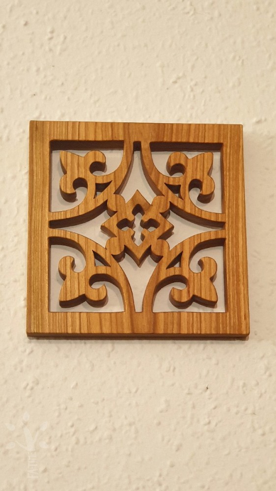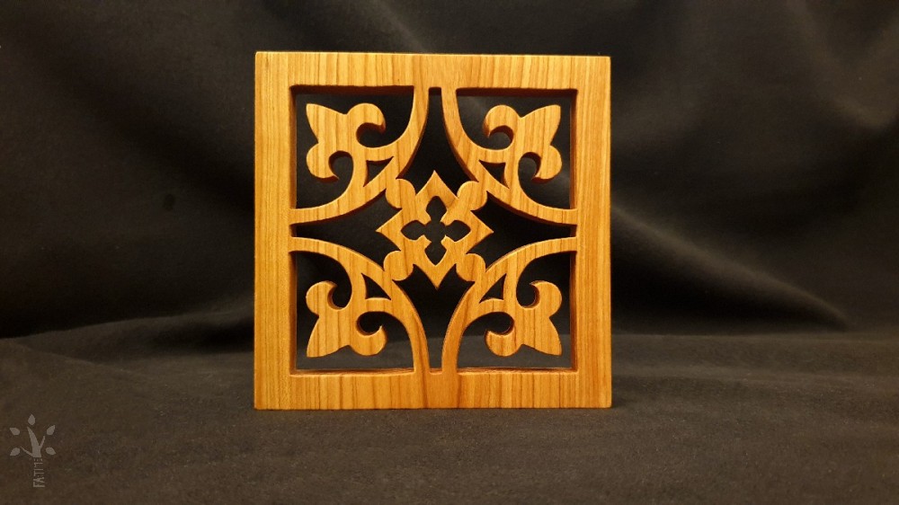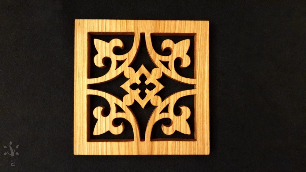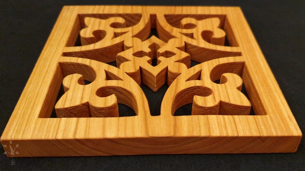 Ornamentikus motívumokkal ékesített edényalátét. Kézi munkával készült.