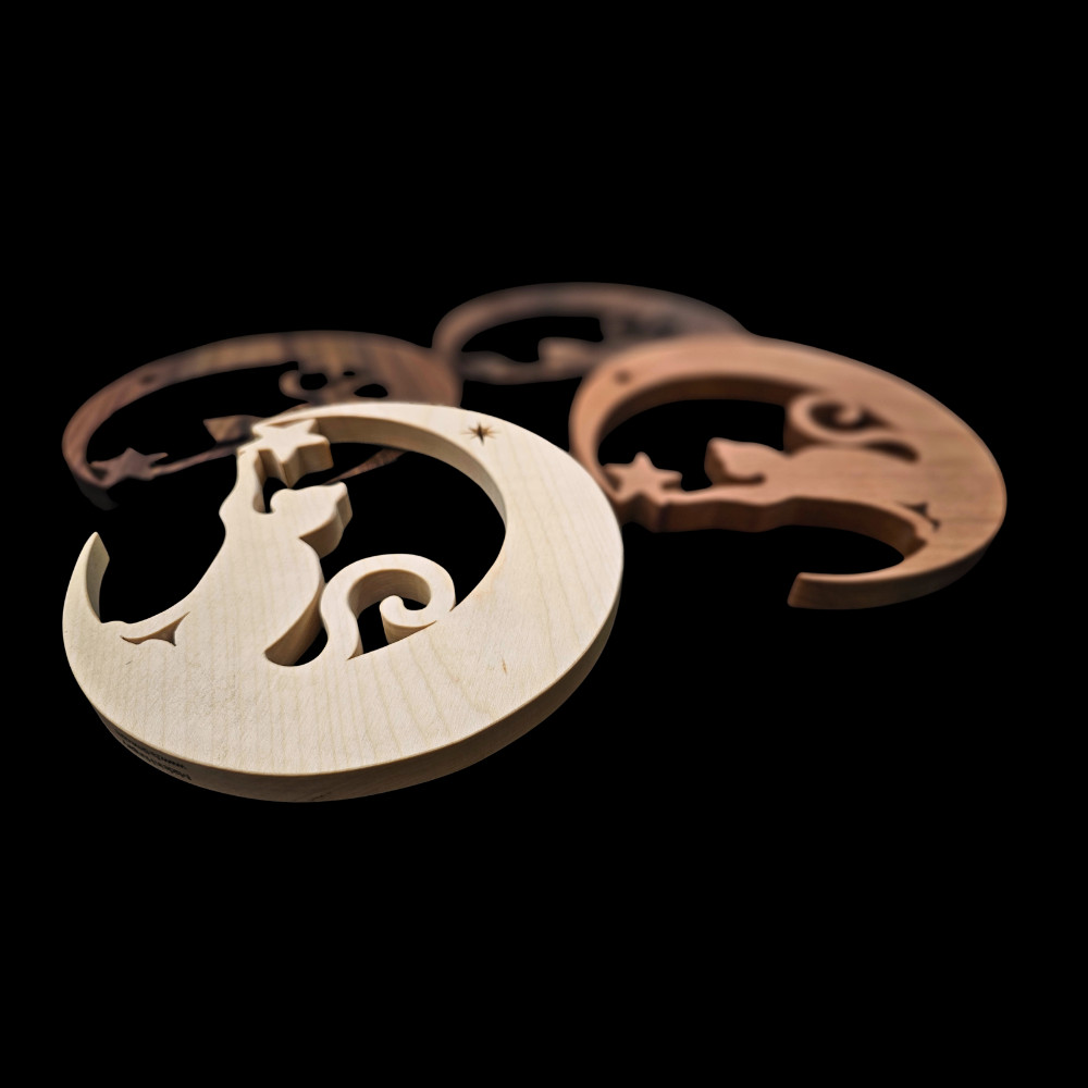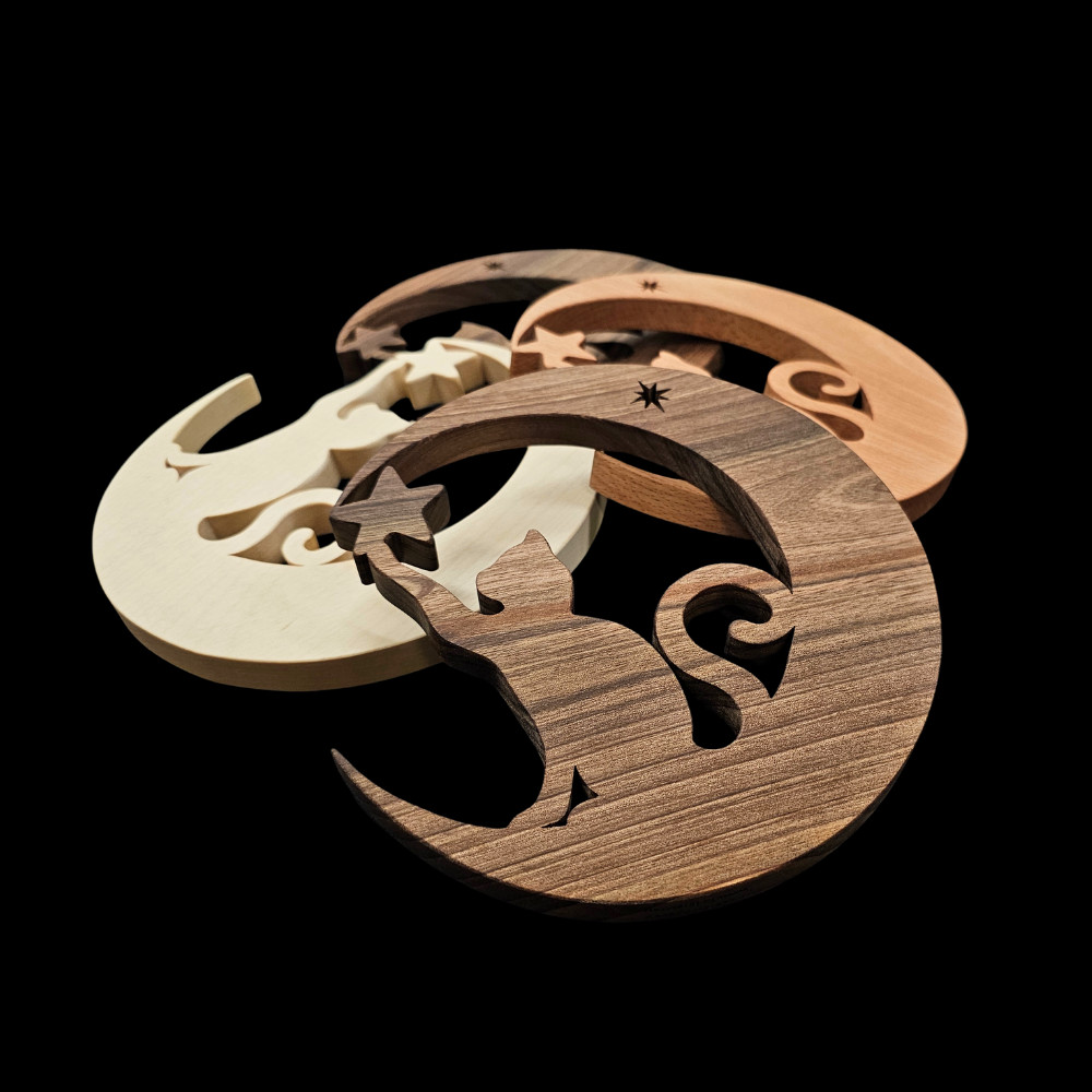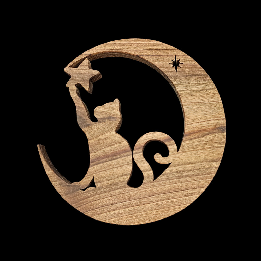 Ez a bájos, lombfűrésszel készült cicás edényalátét, dekoráció különleges hangulatot visz otthonodba. A félholdon ülő, csillagért nyúló cica sziluettje nemcsak esztétikus, hanem szimbolikus is – a kíváncsiság, az álmok és a szabadság megtestesítője.