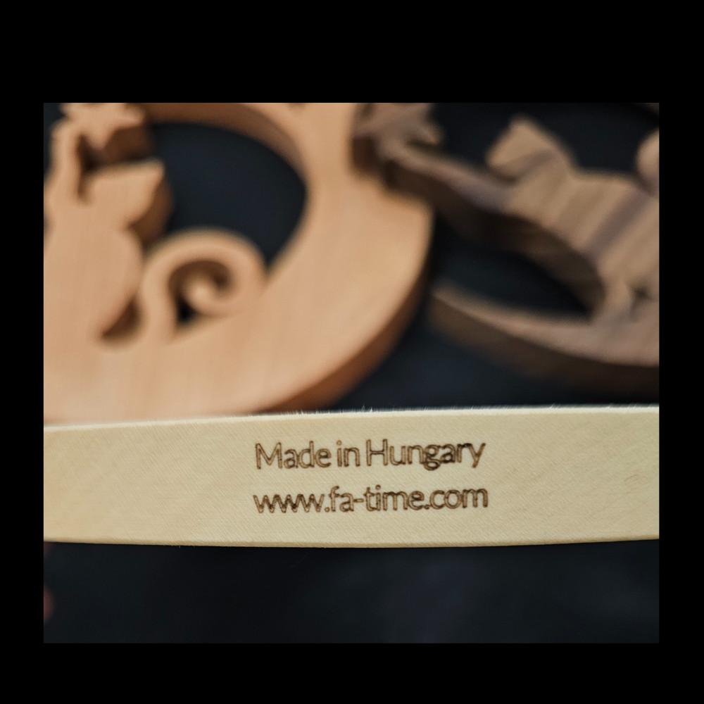 Kérésre más méretben is elkészítjük, és egyedi gravírozás is rendelhető, például nevek, dátumok vagy rövid üzenetek elhelyezésével – így teljesen személyre szabott lesz a dekoráció. A képeken dió, juhar és bükkből készült darabok láthatóak.