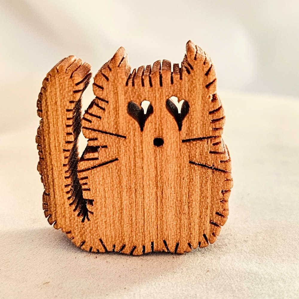 Zo-ZOO World Furry Cat Wooden Magnet – Scroll Saw Handmade Animal Figure