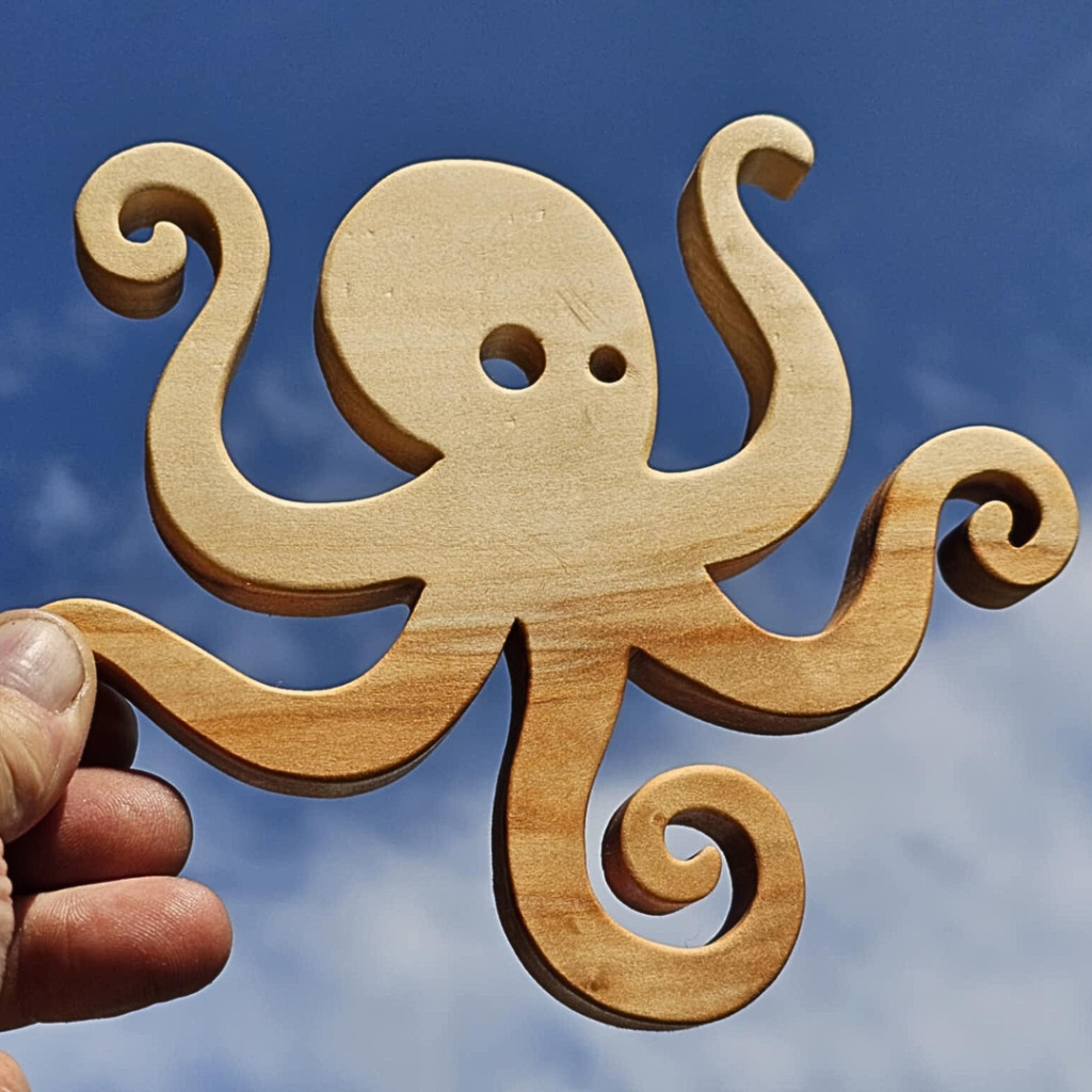 Ez a különleges formájú edényalátét kézi munkával, lombfűrésszel készül. A polip nem csak praktikus, de garantáltan beszédtéma lesz minden asztaltársaságban. Modern, bohókás formája vidám hangulatot varázsol a terítékbe, miközben megbízhatóan védi az asztalt a forró edényektől,tálaktól. Többféle fából készítjük. A felhasznált fa fajtájától függően színben eltérőek lehetnek.