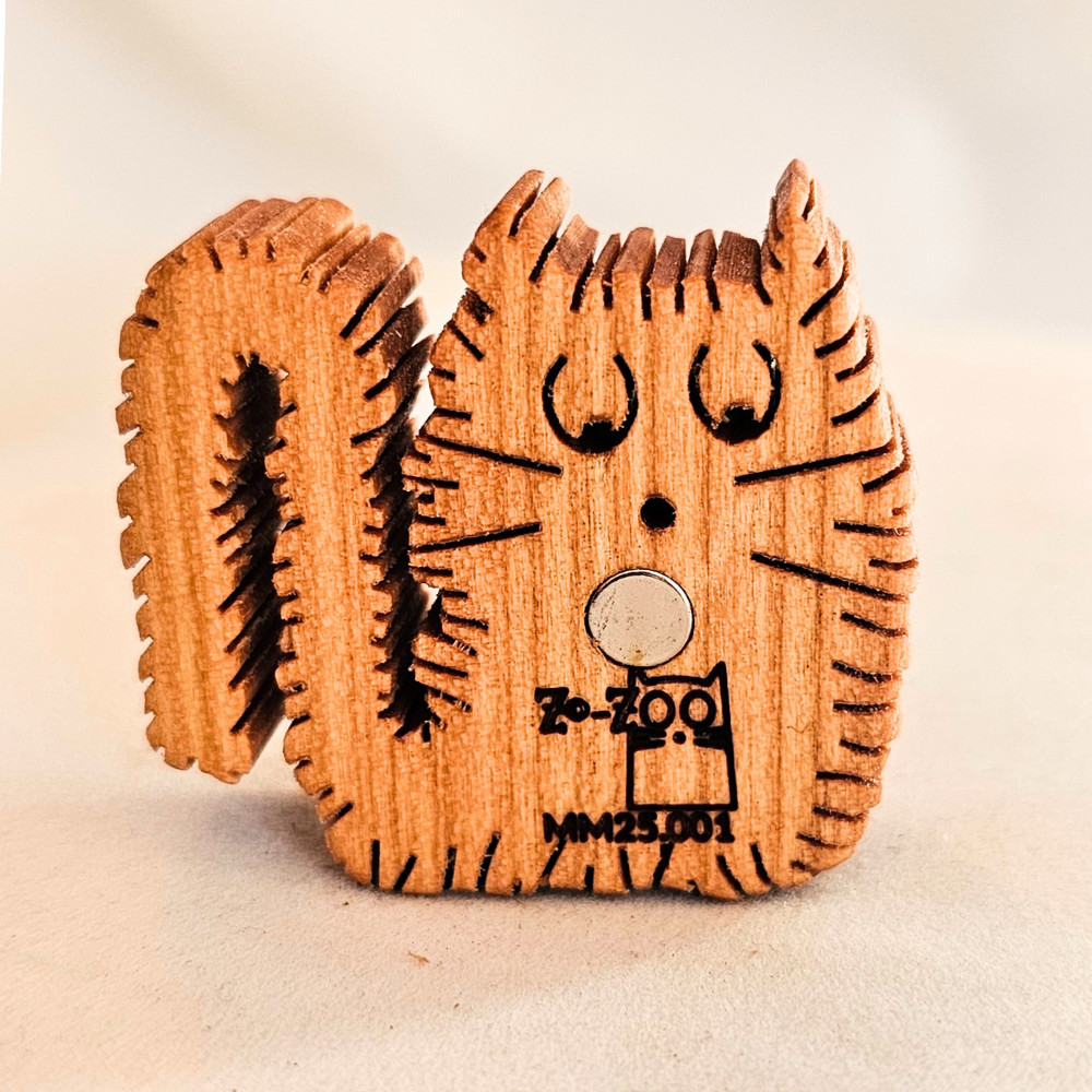 Zozoo World szőrös cica  fa mágnes  lombfűrésszel készült állatfigura