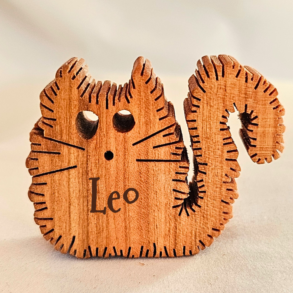 Zozoo World szőrös cica  fa mágnes  lombfűrésszel készült állatfigura