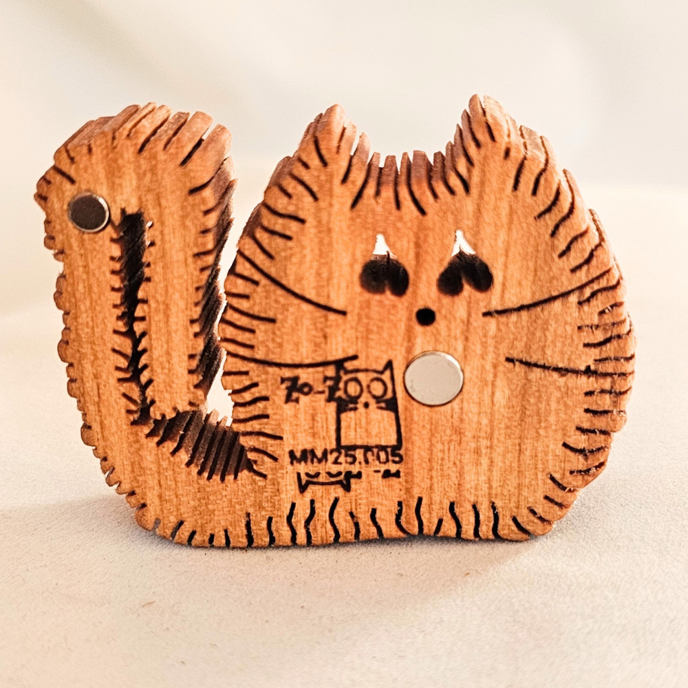 Zozoo World szőrös cica  fa mágnes  lombfűrésszel készült állatfigura